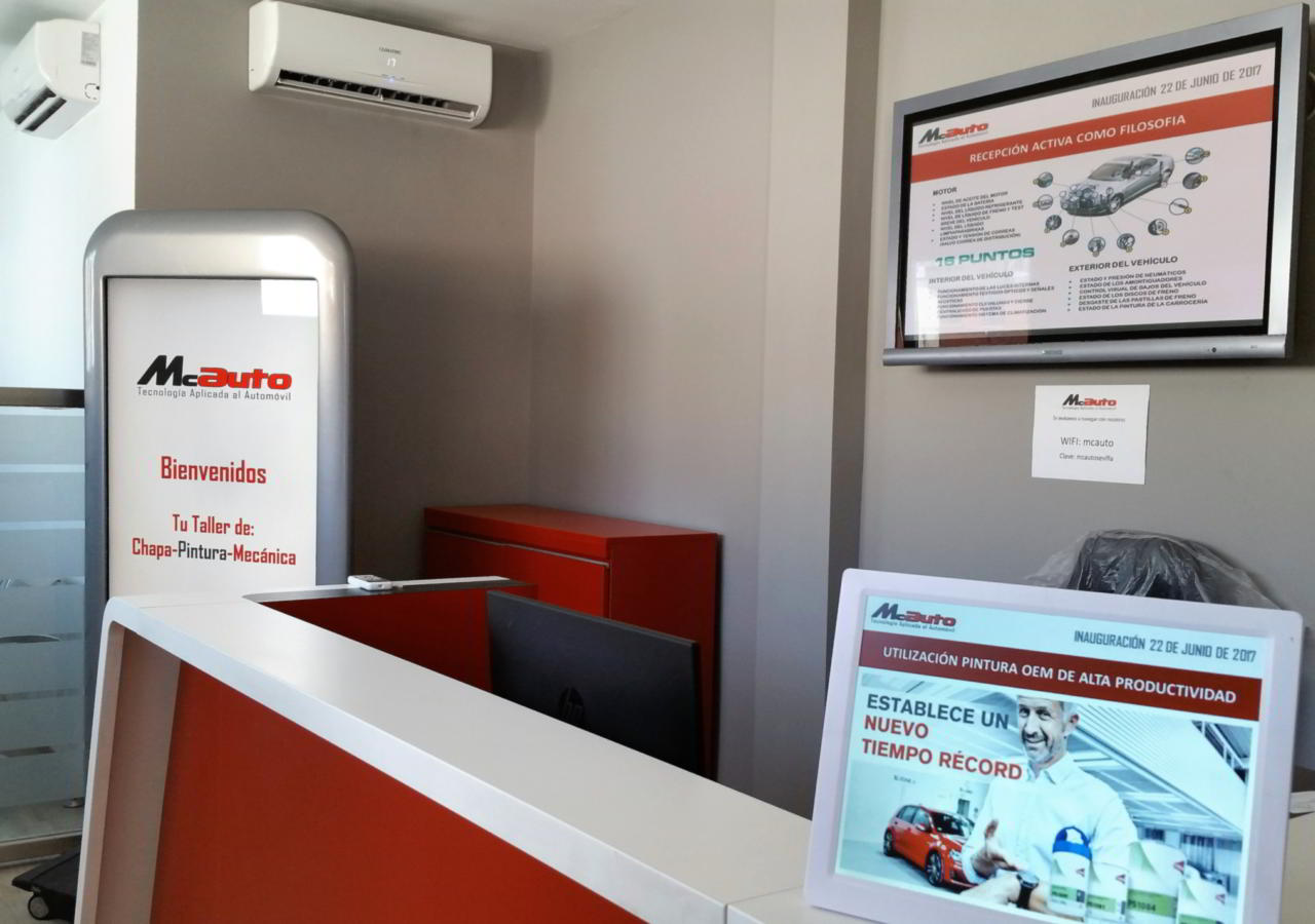 La recepción cuenta con un sistema de gestión de citas automatizadas, donde el cliente, puede ver su turno y fase de reparación de su vehículo.